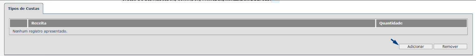 Em “Tipo de custas” clique em Adicionar