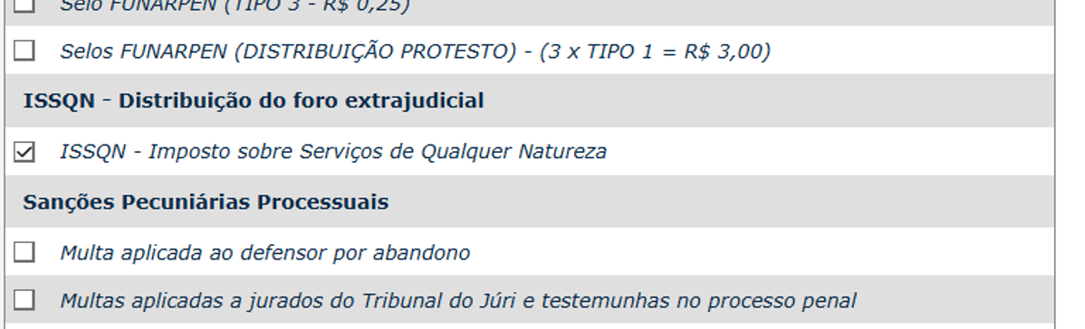 E também a opção “ISSQN – Imposto sobre Serviços de Qualquer Natureza”